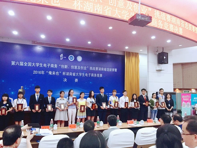 9月28日,湖南省教育厅、商务厅联合发布了《关于公布2016年湖南省大学生电子商务大赛结果的通知》(湘教通〔2016〕440号),通报了今年6月在湘潭大学举办的湖南省大学生电子商务大赛获奖情况,经省教育厅和省商务厅审定,大赛评选了一等奖16项(我校获得3项),二等奖22项(我校获得2项),三等奖28项。经过学校初赛决赛、湖南省网评复赛和最终决赛,第一次参加该项赛事的我校代表队载誉而归,选送参赛的5个团队全部获得了一、二等奖。其中,陈云、陈娟老师指导的“代客宝宝团队网络科技有限责任公司”项目、任剑、姜曙光老师指导的“智筑农家云服务平台”项目、颜建军、陈娟老师指导的“导游网电子商务平台”项目获得一等奖;陈云、阳志梅老师指导的“换着玩-儿童二手玩具交换与捐赠平台”项目、陈云、陈娟老师指导的“长沙聚废宝废品回收有限公司”项目获得了二等奖。我校还和中南大学、湘潭大学等7家单位获得了优秀组织奖。