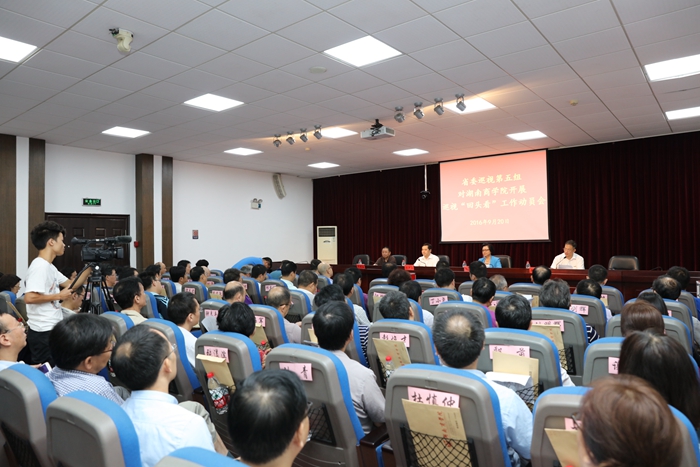 根据省委关于巡视工作的统一部署,9月20日,省委巡视第五组对湖南商学院开展巡视“回头看”工作动员会召开。省委巡视办副主任陈国玉传达了中央、省委关于巡视工作的新精神,并就配合做好巡视工作提出要求。省委巡视第五组组长张泽军同志作了动员讲话。学校党委书记唐亚阳同志主持会议并作了表态发言。