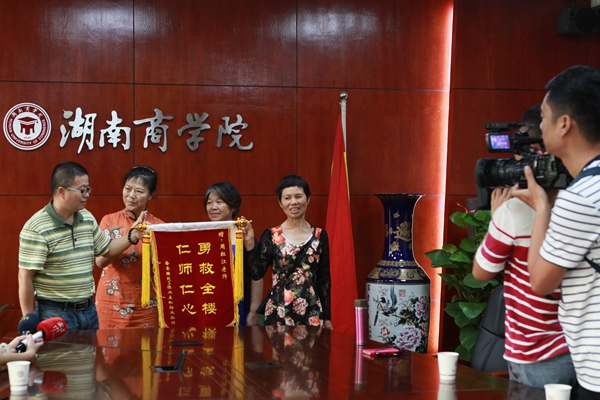 “周老师在火灾发生时挺身而出,他救了我们一栋楼人的命,我们代表整栋楼的居民来感谢他”,居民代表潘阿姨动情地说道。