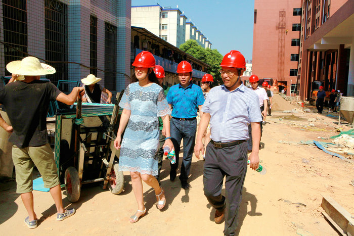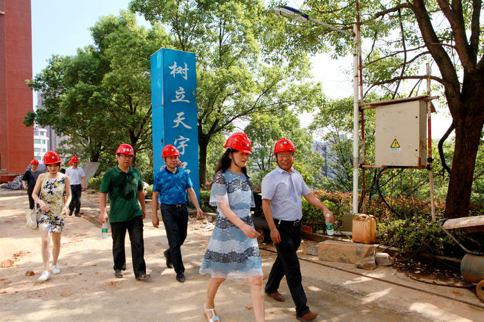 7月25日,校长陈晓红,副校长彭进清、王明高率党政办、财务处、基建处、后勤处等部门负责人顶着炎炎烈日,深入一线察看暑期校园在建各项目施工情况,并看望慰问施工人员。