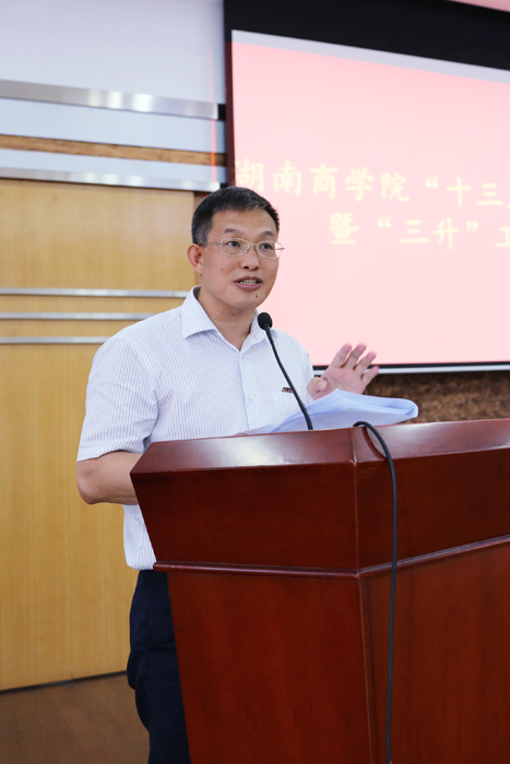 副校长王明高在会上通报了学校“三升”工作的相关情况,深入分析了我校“三升”的优势及不足,提出“三升”目标的实现关系到学校的长远发展,一定要抢抓这一轮高等教育发展的新机遇,自加压力,只争朝夕,以“跳起来摘桃子”的精神在“高峰、高原、高端”上作大文章。