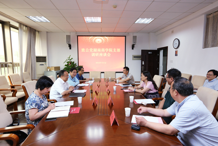 7月4日下午,致公党省委专职副主委向佐谊,致公党省委副巡视员、组织处处长余海峰,致公党省直工委办主任朱沈萍,致公党省委办公室主任叶玉泉来我校调研致公党基层组织建设情况。会议在校二办公楼608会议室举行,校党委副书记夏继春出席会议,会议由组织统战部部长甘德健主持。校党委书记唐亚阳、校长陈晓红会见了向佐谊副主委一行,并就相关工作进行了交流。