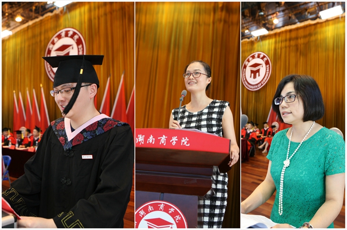 在庄严的国歌中,毕业典礼正式开始。副校长刘国权宣读《湖南商学院关于准予吴辉君等同学毕业的决定》、《湖南商学院关于授予吴辉君等同学学士学位的决定》。校党委副书记夏继春宣读了省级优秀毕业生和自主创业优秀毕业生的表彰通报。仪式上,获得省级优秀毕业生荣誉称号的代表上台接受了荣誉证书。