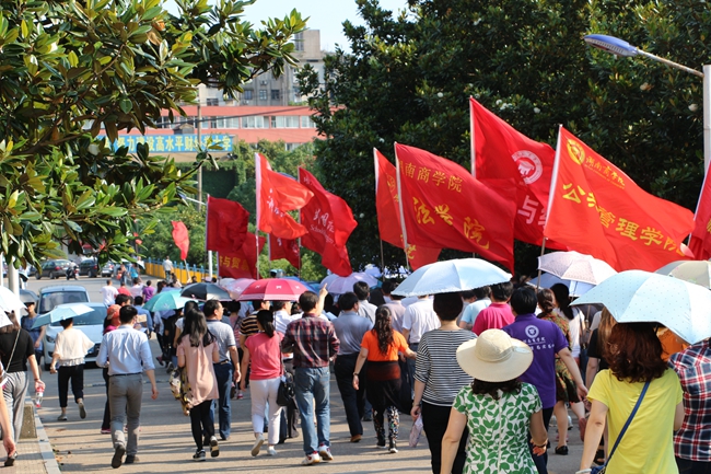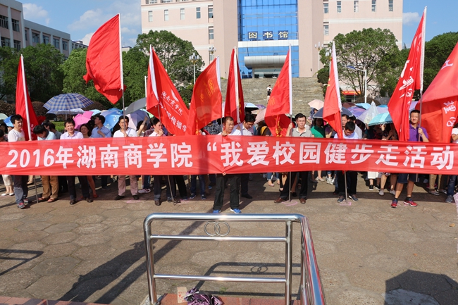五月的校园一片新绿,在这生机勃勃的季节里,正是开展健身运动的好时节。 5月31日下午,学校“我爱校园健步走”活动启动仪式在英才广场举行,校领导和500余名教职工一起参加了活动。校党委书记唐亚阳宣布2016年湖南商学院“我爱校园健步走”正式开始。副校长彭进清致辞,校工会常务副主席罗传玲主持活动启动仪式。