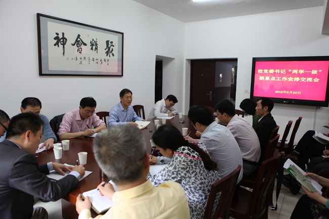 校党委书记唐亚阳在听取了联系点书记关于“两学一做”工作汇报后,对此次交流会的目的和意义作了阐述。他说,从中央到省以及省委教育工委高度重视“两学一做”学习教育,党和国家迈出了转作风、正党风的有力步伐,这是对人民群众热切期盼的积极回应,也充分表明了我们党坚持从严治党的坚定决心。我们也应通过“两学一做”学习教育树立良好的工作作风,通过党风带动学风、教风、校风的转变。唐书记认为,联系点基层党组织的工作做得很实,各项安排稳步推进,为“两学一做”学习教育开好了头,希望以此带动和辐射全校“两学一做”工作的开展。