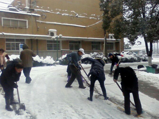 2008年那场冰冻灾难至今让人回想起来都心有余悸。三汊矶校区的树木移栽工程接近尾声时赶上了大冰灾。