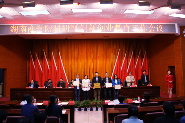 副校长王明高在会上宣读了学校《关于表彰2014—2015年度科研管理先进个人、科研工作先进集体、优秀科研成果奖的决定》和《关于表彰2014—2015年度科研先进个人的决定》。在激昂的音乐和热烈的掌声中,出席会议的各级领导为获奖个人和获奖单位颁奖。