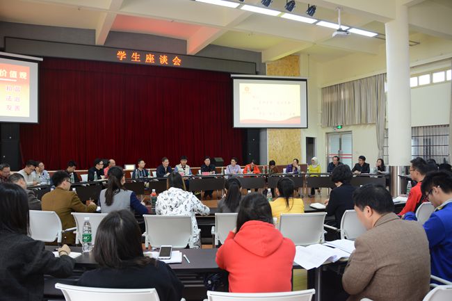 4月8日下午,学校在大学生活动中心召开学生代表座谈会。校党委书记唐亚阳、副校长曾伏秋出席会议,党政办、学生工作处、教务处、校团委、后勤处等部门负责人,各二级学院党总支副书记和42名学生代表参会。