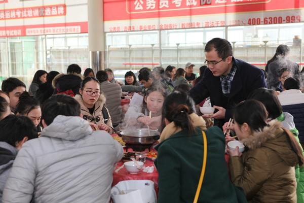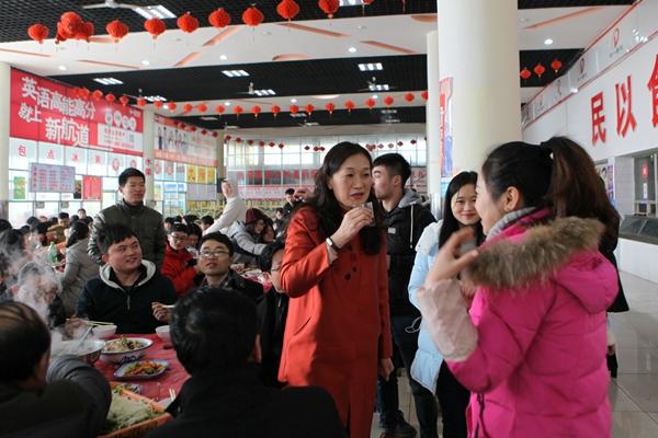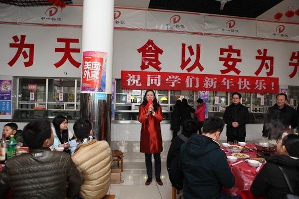 “由于各种原因,有些同学不能回家过年,学校特意准备了团年饭,学校是大家共同的家,是大家永远的精神港湾”,陈晓红校长的饱含热情的开场白,引起了同学们阵阵欢呼,陈晓红校长还在讲话中鼓励同学们合理用好假期时间,叮嘱大家留校期间注意生命财产安全,多通过电话、网络与父母家人沟通联系,送祝福、报平安,并祝愿所有同学度过一个健康、快乐、平安、充实的假期。