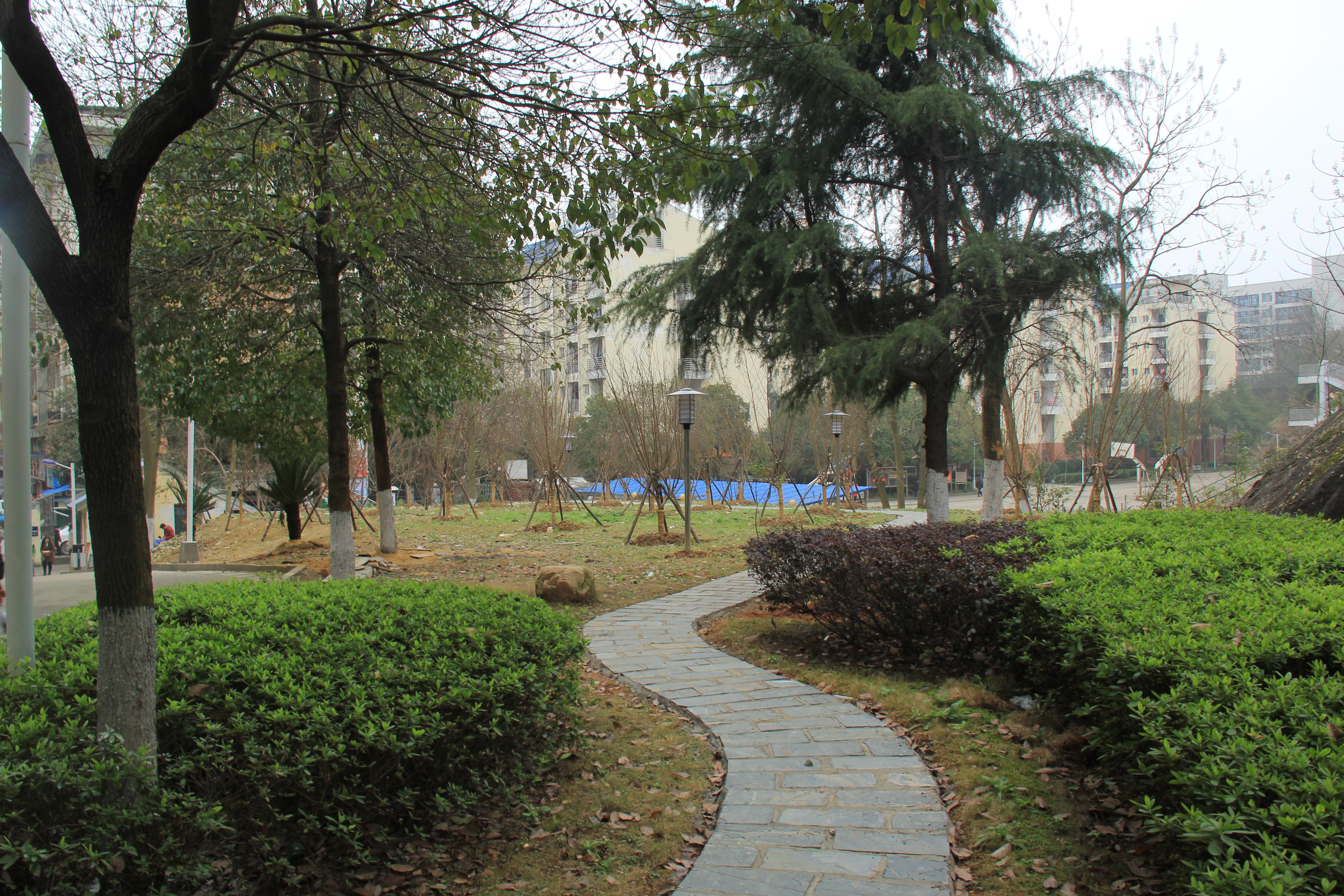 修整后的日新楼前坪及花园