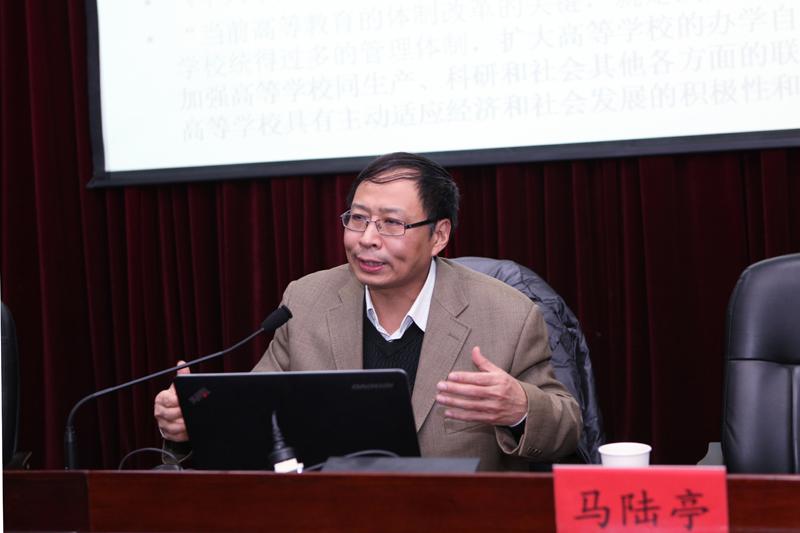1月7日,教育部教育发展研究中心研究员、高教室主任马陆亭应邀来校,就“学习贯彻五中全会精神,重视高校战略规划编制” 作专题讲座。讲座由副校长黎定军主持。