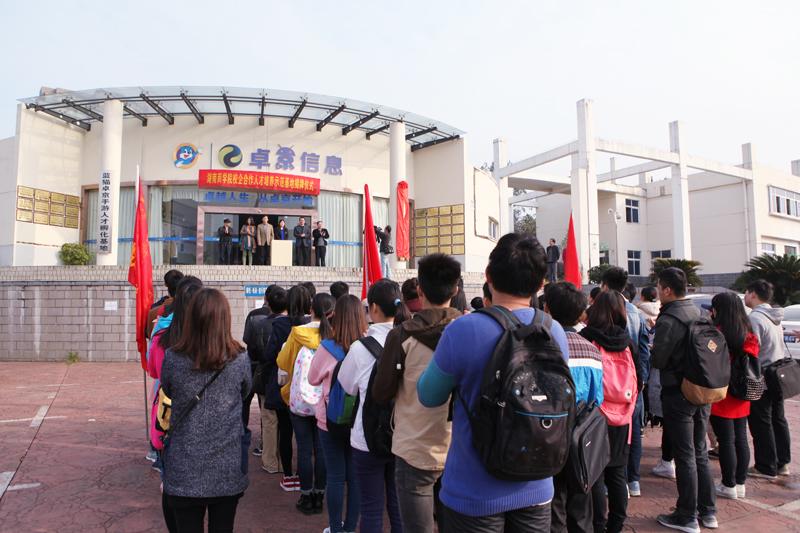 副校长刘国权在揭牌仪式上致辞,他代表学校向卓景京公司为校企合作提供的技术平台表示感谢,他指出,学校将根据相关岗位的人才要求与企业导师共同制定、实施人才培养计划,进一步提高我校人才培养的针对性和有效性,提升学生的岗位技能和职业素养,提高学生的就业质量和稳定性,使其获得良好的职业发展空间,实现企业和学校间“互利双赢、优势互补”。