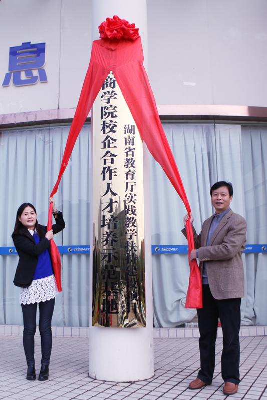 11月9日,副校长刘国权及教务处、数学与统计学院负责人一行到省级人才培养示范基地扶持项目——湖南商学院校企合作复合型信息技术人才培养示范基地进行考察和交流。副校长刘国权和卓景京信息技术有限公司总经理凌晓曼共同为该项目揭牌。