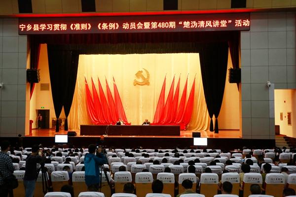 10月29日,湖南省廉政建设协同创新中心首席专家王明高教授应中共宁乡县纪委邀请,出席宁乡县第六届“廉政文化周”学习贯彻《中国共产党廉洁自律准则》和《中国共产党纪律处分条例》动员大会并为“楚沩清风讲堂”开讲。中共宁乡县委书记、宁乡经济技术开发区党工委书记谭小平,宁乡县人民政府县长周辉,中共宁乡县委常委、县纪委书记张武等领导同志以及宁乡县四大家班子成员、各单位、各乡镇党政班子成员、县纪委委员等1200名副科以上领导干部参加。谭小平书记主持讲座并做点评。