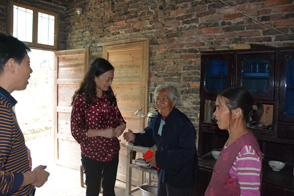 三位校领导分三组开展“一进二访”,共走访21户村民,为14个村民小组的18户特困户送去7200元慰问金。在走访过程中,陈晓红校长等领导认真听取学校驻村帮扶工作队和村支“两委”有关情况汇报,详细了解相关各户致贫原因。走访同时,实地考察了通组公路、主排洪渠、机耕道、产业基地选址、主干道路灯与大院落亮化设施、五保之家安居工程、自来水主管网改造、大院落健身场地、干部培训基地等项目建设情况,还深入学校驻村帮扶工作队宿舍,了解驻村帮扶干部食宿等生活情况。