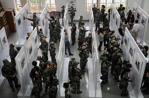 本次图片展分为“历史见证”、“英烈忠魂”、“致敬老兵”、“战场今昔”四个篇章,共展出近200幅珍贵照片。同学们在照片前驻足凝视,缅怀英雄志士们的事迹。照片中战士们表现出来的坚定与从容、刚烈与无畏,极大地震撼着同学们的心灵,也教育着他们要倍加珍爱当今的和平,为实现中国梦而努力而不懈奋斗。