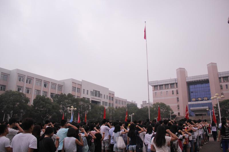 在国旗下,校国旗班代表王进文以“勿忘国耻,开创未来”为主题作了发言。他说,作为一名大学生,应当不忘国耻,不忘抗战精神,在这个日新月异、飞速发展的社会中树立理想,勇敢实践,顽强拼搏,努力向上。从现在做起,从自我做起,齐心协力为祖国的繁荣昌盛做贡献,为我校“三升三旺”战略目标的实现做贡献。