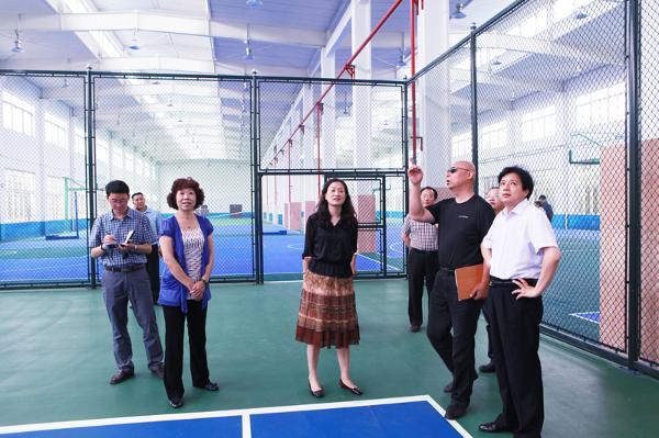 岭南校区健身中心维修、改造工作已基本完成,陈校长察看了网球、篮球、乒乓球等场地,对建设情况表示满意,她叮嘱工作人员,尽快把休息椅摆放到位、将篮球场地旁的木头柱用软皮包好,以防师生运动时撞伤,其他的细节之处也要严格把关,给广大师生营造一个健身、运动的良好环境。