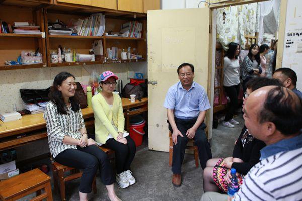 5月8日中午,校长陈晓红、副校长彭进清,以及学生处、财政金融学院负责人来到翠雅公寓6栋115寝室,亲切探望陈一芬同学。