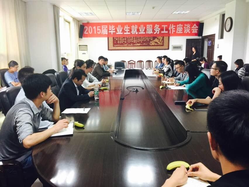 4月27日下午, 2015届毕业生就业服务工作座谈会在二办公楼401会议室召开。招就处负责人与各学院2015届毕业生代表进行了座谈。