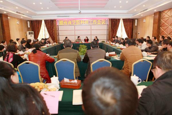 科研处处长周鲜成教授在会上就2014年科研工作进行了总结。 2014年我校在科学研究和学科建设六个方面取得显著成效,尤其是科研平台建设和服务地方经济社会发展更是取得可喜成绩和突破:学校首次获得湖南省廉政建设“2011协同创新中心”;柳思维教授撰写的调研报告获得国务院总理李克强的重要批示。会议还提出2015年学校科研和学科建设工作重点,即进一步做好2015国家项目的申报工作,广泛宣传发动,认真做好项目团队的组建,加强项目申报书的撰写和打磨。