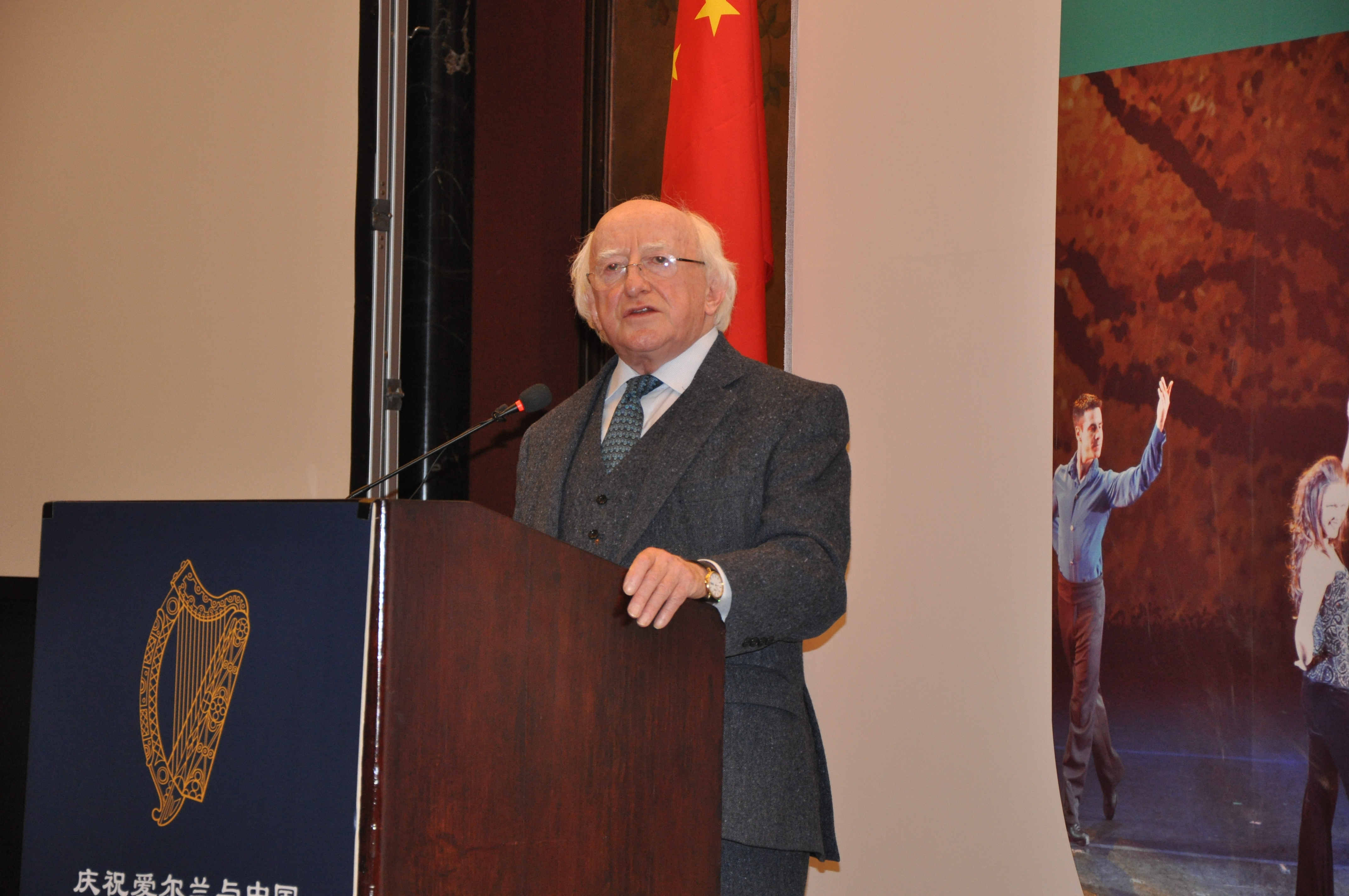 爱尔兰总统希金斯在中爱交流合作招待会上致辞