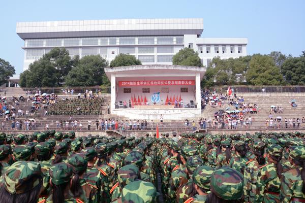 我校2014级新生军训汇报检阅仪式暨总结表彰大会隆重举行