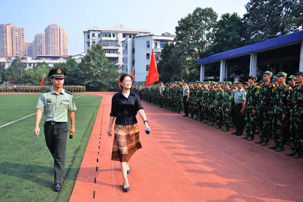 伴随着雄壮激昂的《中国人民解放军进行曲》,陈晓红在余腾健的陪同下检阅了新生军训队伍。各方队进行了分列式表演,受训新生军姿挺拔,迈着矫健的步伐通过主席台,以饱满的精神,高昂的热情接受检阅。