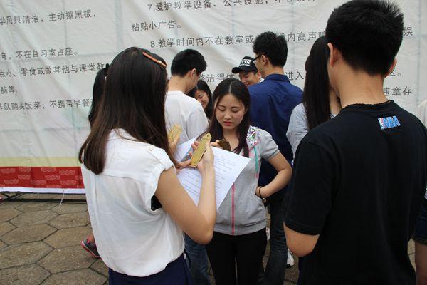 此前,校青协举办了“创建文明校园”系列活动,组织同学们清除小广告、美化校园,收到了较好效果。习近平总书记5月4日考察北京大学与师生座谈时,强调广大青年要自觉践行社会主义核心价值观。据校团委副书记曾晶介绍,校团委随即组织召开了师生代表座谈会,认真学习领会总书记重要讲话精神,并在全校范围内开展了 “我的青春我奋斗,文明勤学勇争先”主题团日活动,引导我校大学生培育和践行社会主义核心价值观,鼓励青年大学生文明守纪、勤学向上。此次书签发放活动,即是系列活动的内容之一。(文/王晓楠 图/王子源)