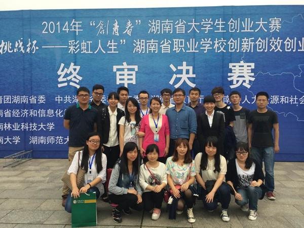 由校团委指导的蔡佳皓团队作品《长沙盛点文化传媒有限公司》获得银奖;王若旭团队的作品《“小时候”文化生活体验馆》、于苗苗团队的作品《艾快迈信息科技有限公司》、陈映冰团队的作品《樱慈乐酵生活创意馆》、邹辉团队的作品《90(就你)大学生社会实践网络有限公司》、蔡冰冰团队的作品《北北校购网络有限公司》、刘园团队的作品《新嗅觉科技发展有限公司》、雷乔波团队的作品《长沙都来教育咨询有限公司》均获得铜奖。