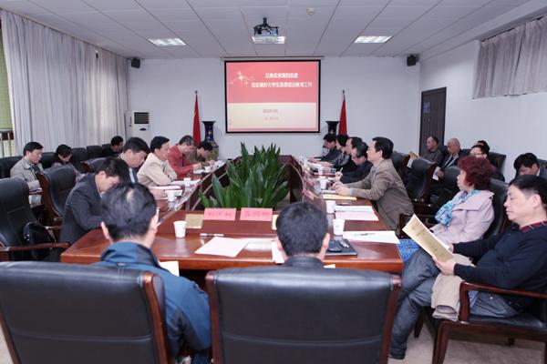在汇报会上,校党委书记欧阳峣从加强组织领导、打造高素质的工作队伍、发挥思政课的主渠道作用、推进课外思想政治教育、努力改善工作条件、加强平安校园建设六个方面对我校思想政治教育工作进行了汇报。欧阳书记表示,学校将始终把立德树人作为教育的根本任务,将思想政治教育与实践教学结合起来,不断加强学生党团组织建设,切实做好学生思想政治教育工作。