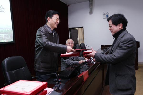 副校长王明高在会上宣读《关于公布湖南商学院2013年硕士研究生指导教师遴选结果的通知》。校长唐未兵、校一级荣誉教授柳思维为研究生导师颁发聘书。