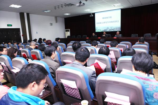 我校一级荣誉教授柳思维、中南大学博士生导师陈晓红、湖南省教育考试院成招处处长朱天视、教育厅学位办余伟良主任在会上作培训讲座,我校首批59位硕士研究生导师参加会议。