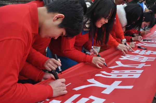 仪式伊始,校团委副书记曾晶发表讲话。她与同学们分享了历年来学习雷锋活动的心得体会,认为社会主义建设新时代的学习雷锋活动已融入了社会主义核心价值观等新内容,并表示学校将以“雷锋在我心,文明我做起”为主题,组织开展学雷锋系列活动,将雷锋精神贯彻到我校大学生思想道德建设全过程,全面理解和把握社会主义核心价值观的基本内涵,努力实现学雷锋活动的时代化和常态化,使雷锋精神和社会主义核心价值观内化为广大学生的自觉追求和实际行动,转化为努力学习、提高素质、报效学校、报效祖国的强大精神力量。最后,她预祝此次学习雷锋活动圆满成功。志愿者代表邱慧发言,她结合自己两年来的志愿者工作经历,希望雷锋精神在每个志愿者心中驻扎。随后,在校青协主席叶冬晗的领誓下,全体志愿者庄严宣誓。仪式最后,与会者在横幅上签名,表达将雷锋精神落实在实际行动上的意愿。