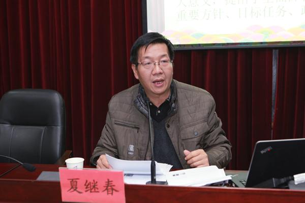 12月17日下午,学校在二办楼301会议室举行十八届三中全会精神辅导报告。报告会由校党委书记欧阳峣主持,校党委副书记夏继春主讲,全校副处级以上干部听取了报告。