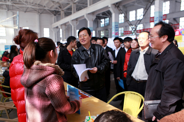 上午,校长唐未兵,副校长彭进清,湖南省教育厅学生处副处长谢桂平亲临招聘会现场检查指导。唐未兵校长与用人单位的招聘负责人进行了交流,希望各用人单位在此次招聘会上招募到满意的实用型人才。唐校长还与我校2014届毕业生胡婷、杨甜等同学亲切交谈,询问了她们对所学专业、就业意向和求职岗位的看法。唐校长鼓励大家树立就业信心,学校会尽最大努力为大家创造良好的就业机会。湖南省教育厅学生处副处长谢桂平在招聘会现场调研指导了毕业生就业工作,并为毕业生就业加油鼓劲。
