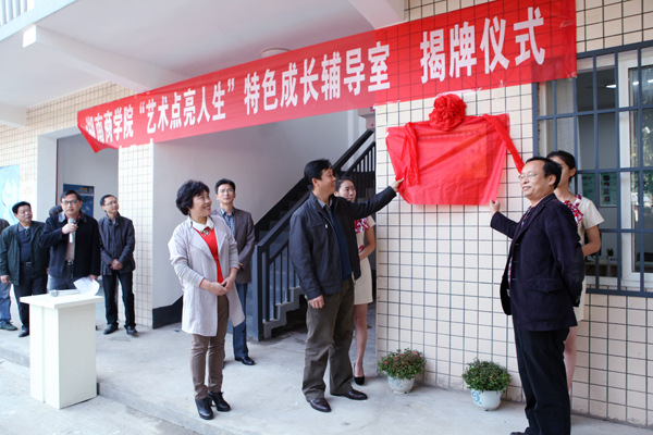 11月19日下午,副校长彭进清、刘国权为我校&“艺术点亮人生&”特色成长辅导室揭牌,学工处、校团委负责人及设计艺术学院全体师生见证了这一时刻。