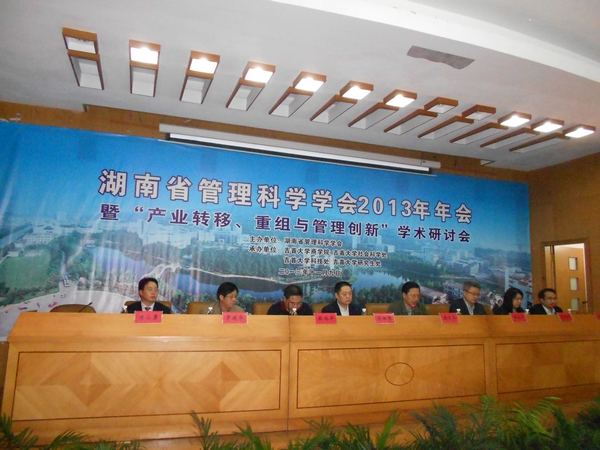 11月9日上午,湖南省管理科学学会2013年年会暨&“产业转移、重组与管理创新&”学术研讨会在吉首大学举行。湖南省管理科学学会会长、我校校长唐未兵出席会议。