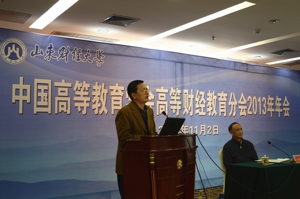 11月2日,中国高等教育学会高等财经教育分会2013年年会暨第四届高等财经教育论坛在山东财经大学举行。财政部原部长刘仲藜,高等财经教育分会理事长张玉泰,以及来自中央财经大学、西南财经大学、中南财经政法大学、东北财经大学等40余所财经高校的领导、专家学者出席大会。我校校长唐未兵、副校长杨虹、教务处处长易松芝、党政办副主任付建辉一行出席了会议。