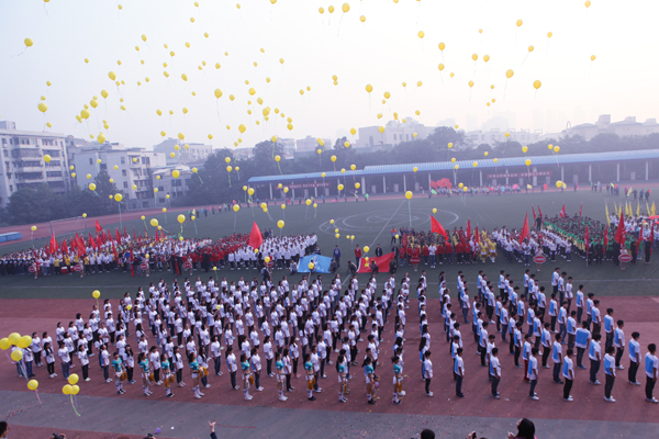 上午8点半,来自全校各二级学院的14个方阵踏着整齐的步伐依次进场亮相。一样昂扬的精神面貌,一样充满激情的斗志,不同的是他们别出心裁的入场方式。经贸学院的五色方阵在绿茵场上显得格外耀眼,伴随着音乐节奏阵型迅速变换,组成的&“奥运五环&”,彰显着经贸学子开拓进取的精神与和谐竞技的风貌;工商学院方阵气势如虹,步伐铿锵有力,撑起的&“中国梦&”&“圆申硕&”字体,表达了工管学子对梦想的执着追求,对我校申硕成功的祝贺;而设计艺术学院的方阵显得创意无限,身着汉服的少年手握如椽大笔走在队伍最前方,古朴大方,紧随其后的拉拉队表演,动感热力,古典与现代,完美结合,氢气球的放飞更是将开幕式现场气氛推向高潮。