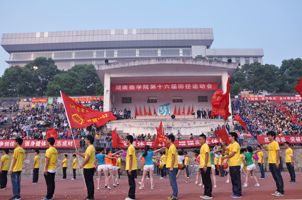 10月25日上午,田径场上,旌旗飘扬、欢声雷动,我校第十六届田径运动会隆重开幕。校领导欧阳峣、唐未兵、夏继春、杨虹、陈丽影、刘国权、李泽华、廖明星和各二级学院及相关职能部门主要负责人出席了开幕式。开幕式由副校长杨虹主持。