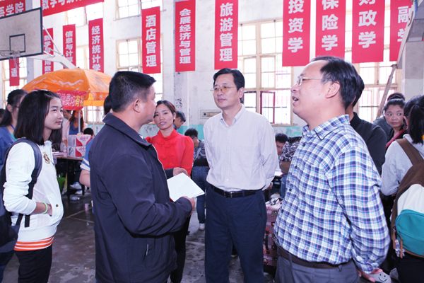 6日上午,校长唐未兵、副校长彭进清、刘国权来到新生报道大厅,慰问了辛勤工作在迎新一线的老师和学生志愿者。校领导仔细询问了新生报道工作情况,对他们热情的服务态度表示高度肯定。唐校长和前来报到的部分新生及家长亲切交谈,对其提出的问题进行耐心解答。随后,校领导到北津学院查看并指导工商管理学院2013级新生入住北校区的工作。