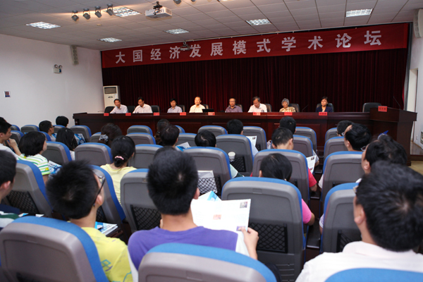 第十二届全国政协委员、中国社科院经济研究所所长裴长洪教授和亚洲开发银行首席经济学家万广华教授分别作了题为《中国梦:开放型经济强国之路》和《中国印度经济发展之比较》的学术报告。武汉大学经济与管理学院简新华教授、美国马里兰州立大学伊莎贝拉研究员、西南财经大学经济学院蒋南平教授先后作了《中国的新型城镇化道路》、《超级大国农业转型的成功》、《大国主导与国际新秩序》的发言。
