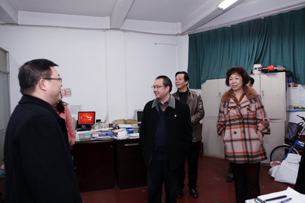 校领导一行还来到教师休息室,与部分院系学生工作办的老师进行了交流。
