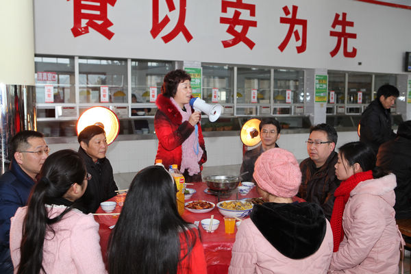 2月9日中午,学校三食堂欢声笑语,暖意洋洋。副校长杨虹与留校学生,及寒假坚守岗位的教职工一道,吃团年饭,欢度除夕。