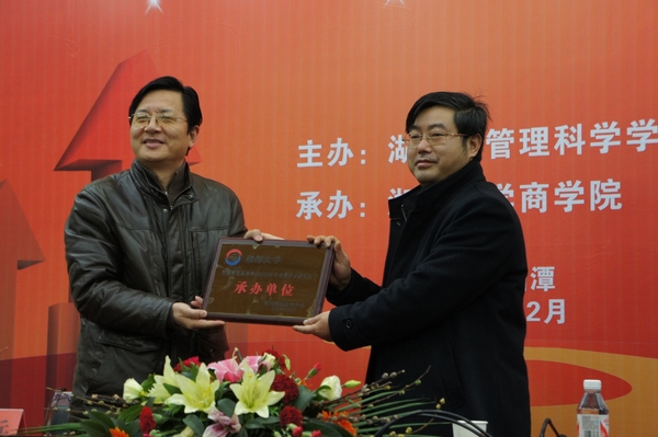 12月29日上午,湖南省管理科学学会2012年年会暨学术研讨会在湘潭大学举行,湖南省管理科学学会会长、湖南商学院校长唐未兵教授出席会议并作年度工作报告。来自中南大学、湖南大学、湖南师范大学、湘潭大学、长沙理工大学、湖南科技大学、中南林业科技大学、吉首大学、湖南人文科技学院等高等院校的专家学者100余人参加会议。
