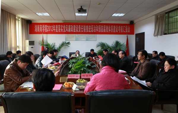 校党委书记欧阳峣从严格落实党风廉政建设责任制、扎实推进惩治和预防腐败体系建设、全面开展廉政风险防范管理工作等三个方面进行了工作汇报。他表示,学校党委对党风廉政建设和反腐败工作高度重视,形成了党委书记和校长负总责、班子成员分工负责的监管机制;学校加强党纪党规、政策法规的学习宣传,开展形式多样的思想教育,注重反腐倡廉教育的针对性和实效性;学校党委注重加强管理制度建设,强化制度的约束力,充分发挥了制度在党风廉政建设中的保证作用;通过开展廉政风险防范管理,将预防腐败的措施融入学校管理之中,建立了一套前期预警、中期监控、后期处置的预防腐败机制。