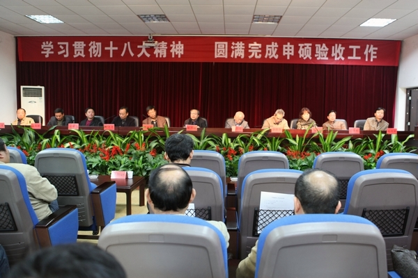 校党委副书记夏继春在会上宣读了《国务院学位委员会办公室关于做好立项建设博士、硕士学位授予单位验收工作的通知》。根据文件精神,验收工作分为立项建设拟授权学科评审和立项建设单位整体验收两个部分。其中,拟授权学科的评审以同行专家投票表决的方式进行;建设工作整体验收以专家进校的方式进行。