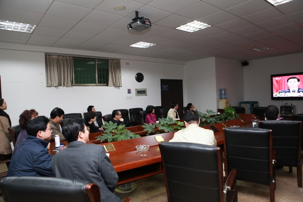 11月8日上午9时,举世瞩目的中国共产党第十八次全国代表大会在北京胜利召开,为了学习、贯彻会议精神,学校领导班子及党务部门负责人,在二办公楼702会议室集中观看了大会开幕式盛况。