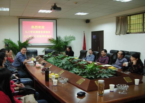 学校党委书记欧阳峣对王仁祥副主委一行的到来表示热烈欢迎。欧阳书记就近年来学校对各民主党派工作的支持情况作了简要介绍,并充分肯定了九三学社湖南商学院支社的工作。